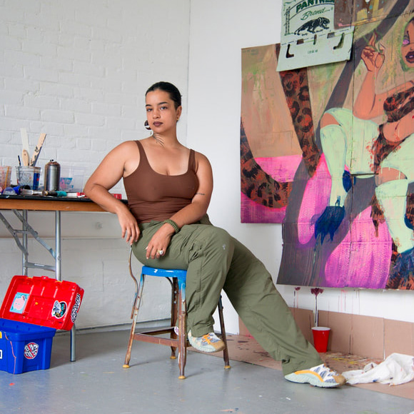 Rixy (she/her) conceptualizes feminine divinity in their various forms and characterizations. Working primarily through painting, sculpture, and public art, her works reinterpret stories of agency—like episodes of a never-ending cartoon. The works often play on the range of sensual femininity: how bodies react, the senses they pick up, and what it means for them to be born, to grow, and heal in their surroundings. Rixy received her BA in Studio Art at UMass Boston, with a concentration in sculpture. She received the 2019 Ruth Butler Travel Fellowship for a Studio Residency in Mexico, and the 2017 Arts|Learning Award for Student Arts Advocacy. She is an Adjunct Instructor at the Boston Architectural College.